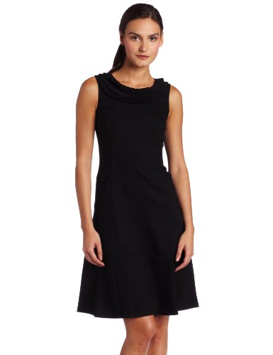 Ak Anne Klein Women's Honeycomb Ruffle Neck Swing Dress, Black, 0