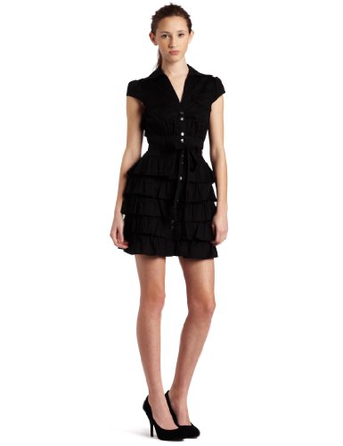 Xoxo Juniors Belted Tiered Shirt Dress,Black,5