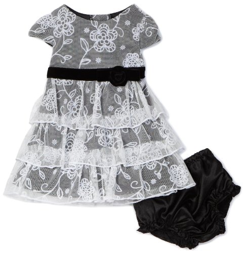 YOUNGLAND Baby-Girls Newborn Flocked Mesh Dress With Panty, Black/Silver, 3-6 Months